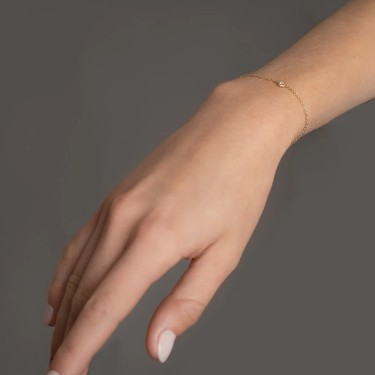 Armbånd i 18k gult gull med en diamant, 0,04 ct, som er fattet i en sirkel av gull med håndfilt overflate.