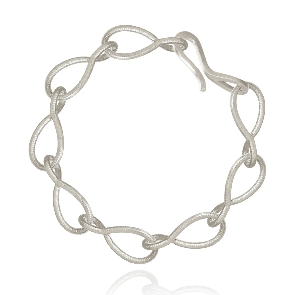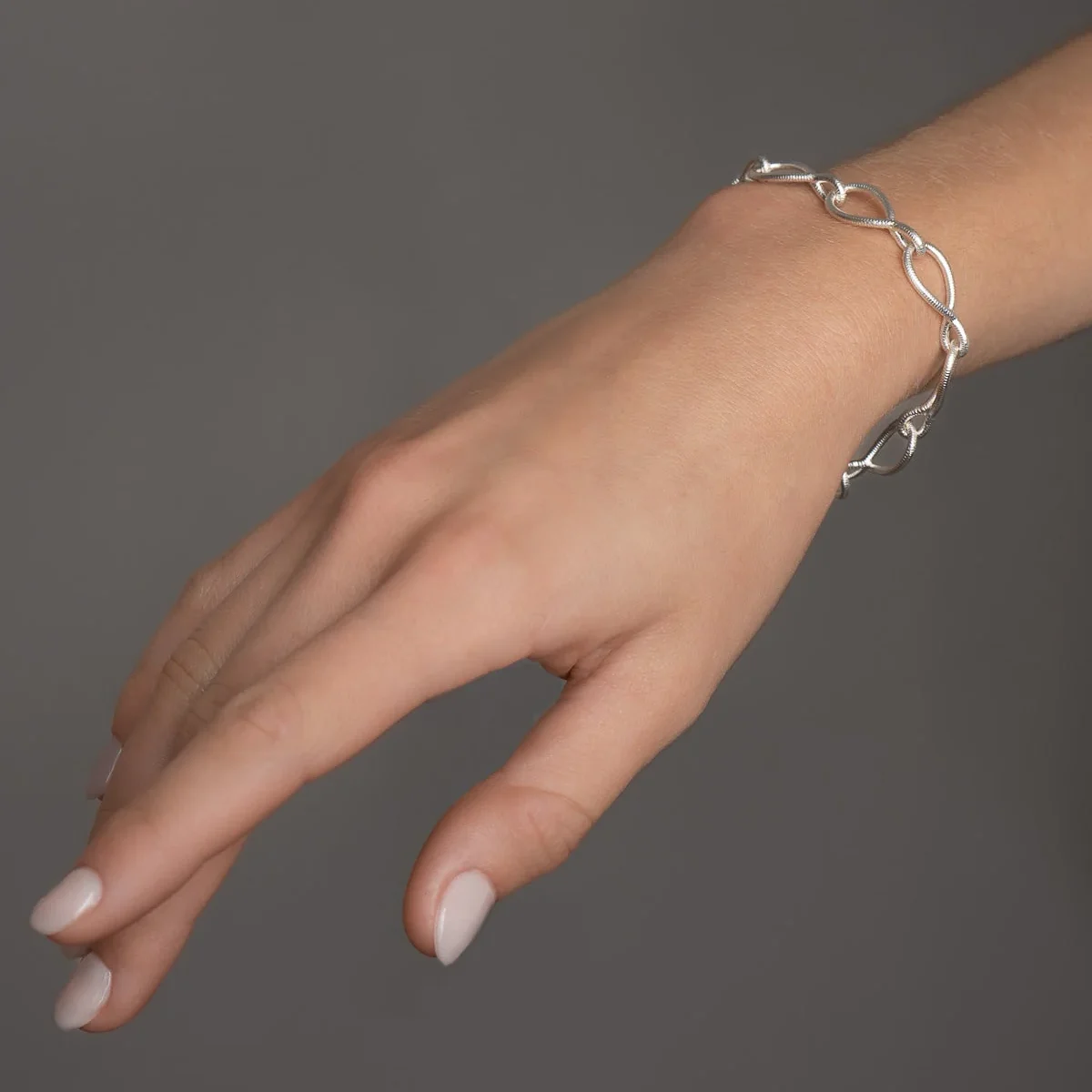 Kharisma Linkarmbåndets ledd er formet slik at de følger håndleddet. Overflaten er håndfilt.
