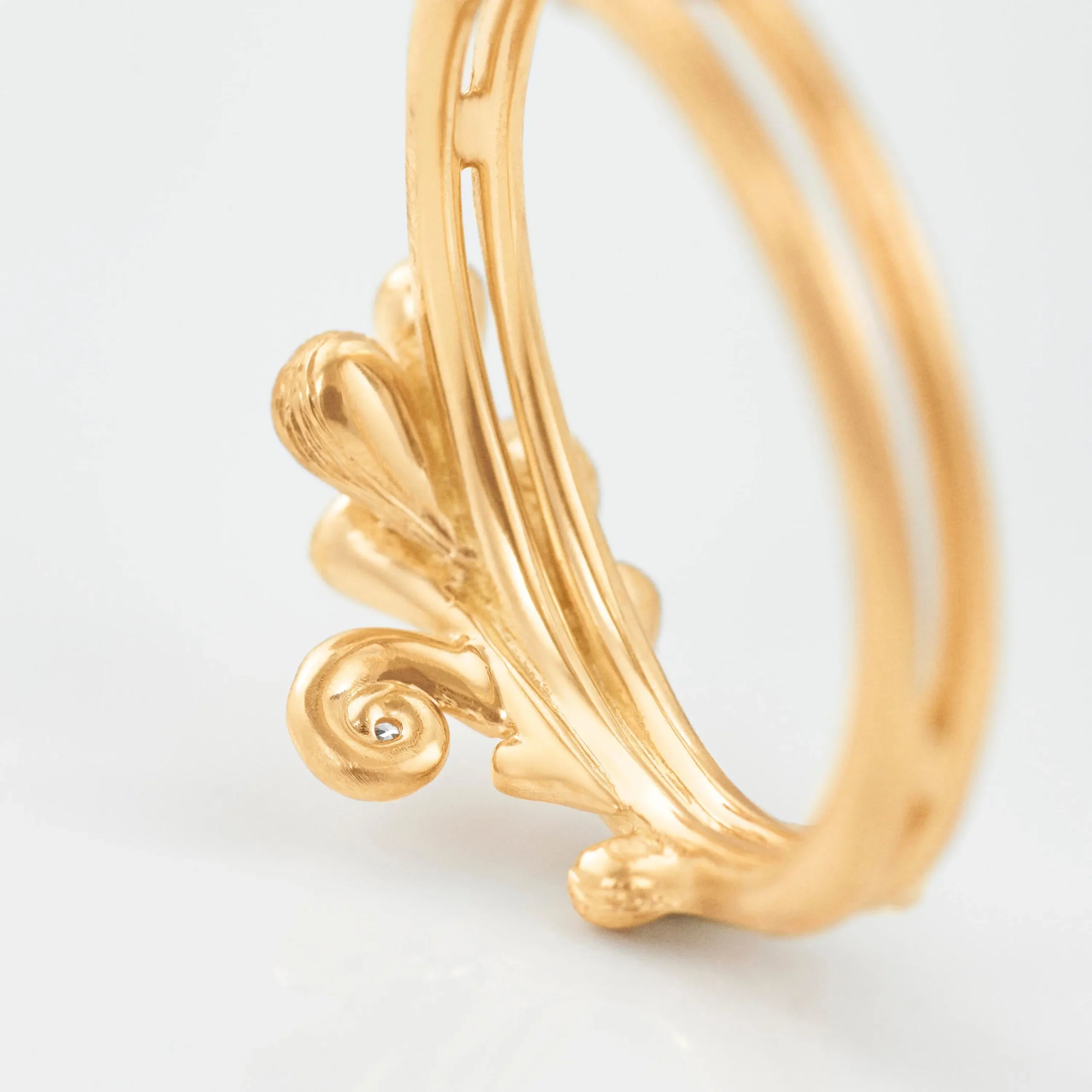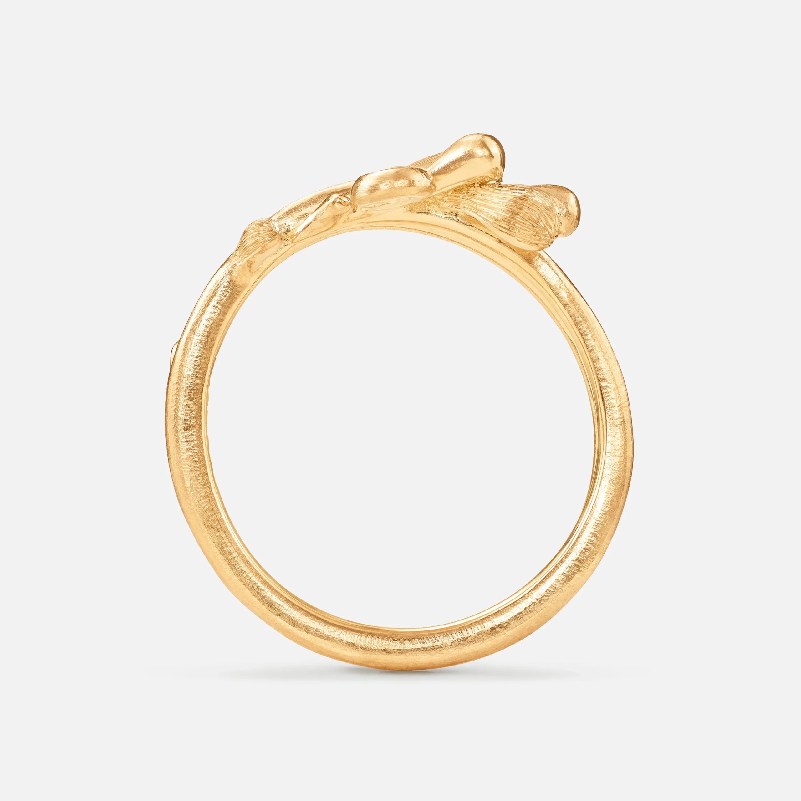 BoHo ring i 18k gult gull håndlaget av dyktige gullsmeder med en 0,008 ct TW. VS. diamant. Overflaten er hamret og satinert for en matt og organisk uttrykk, mens innsiden er polert.