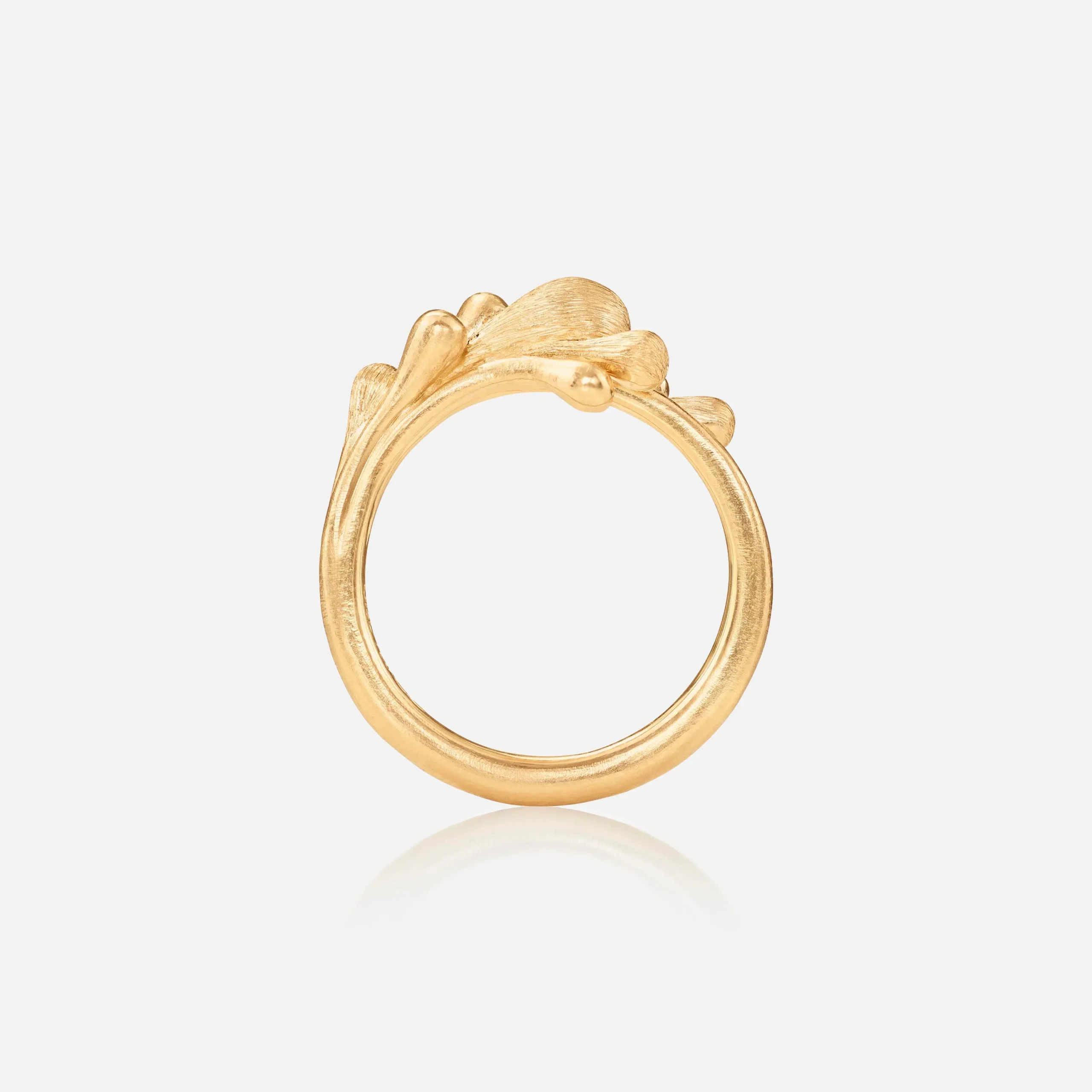 BoHo ring i 18k gult gull håndlaget av dyktige gullsmeder. Overflaten er hamret og satinert for en matt og organisk uttrykk, mens innsiden er polert.